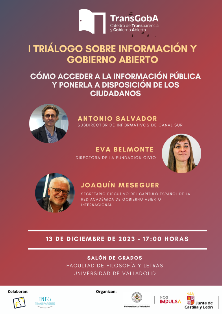 La Cátedra de Transparencia y Gobierno Abierto (TransGobA) de la Universidad de Valladolid ha organizado un programa de actividades para promover la transparencia y el gobierno abierto a un público amplio. Todas ellas se pueden consultar en el Calendario de la página web de la Cátedra.